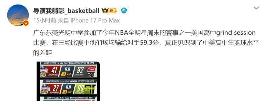 广东东莞光明中学的队员们,无疑是国内同年龄段中的佼佼者。他们经历了严格的选拔,付出了艰苦的训练,才得以站上这样的国际赛场。对于这些十几岁的少年来说,这次经历本身可能是一次巨大的心理冲击。从国内的赢家,到国际赛场上被全面压制,他们需要消化和承受的东西,远比一场失利更多。他们的教练团队,也在赛后反复观看录像,试图从中寻找积极的细节,帮助球员建立信心。但面对如此直接而巨大的差距,任何语言上的安慰都显得苍白。篮球场上的事,最终只能通过篮球本身去解决,通过更刻苦、更科学、更对路的训练去弥补。
